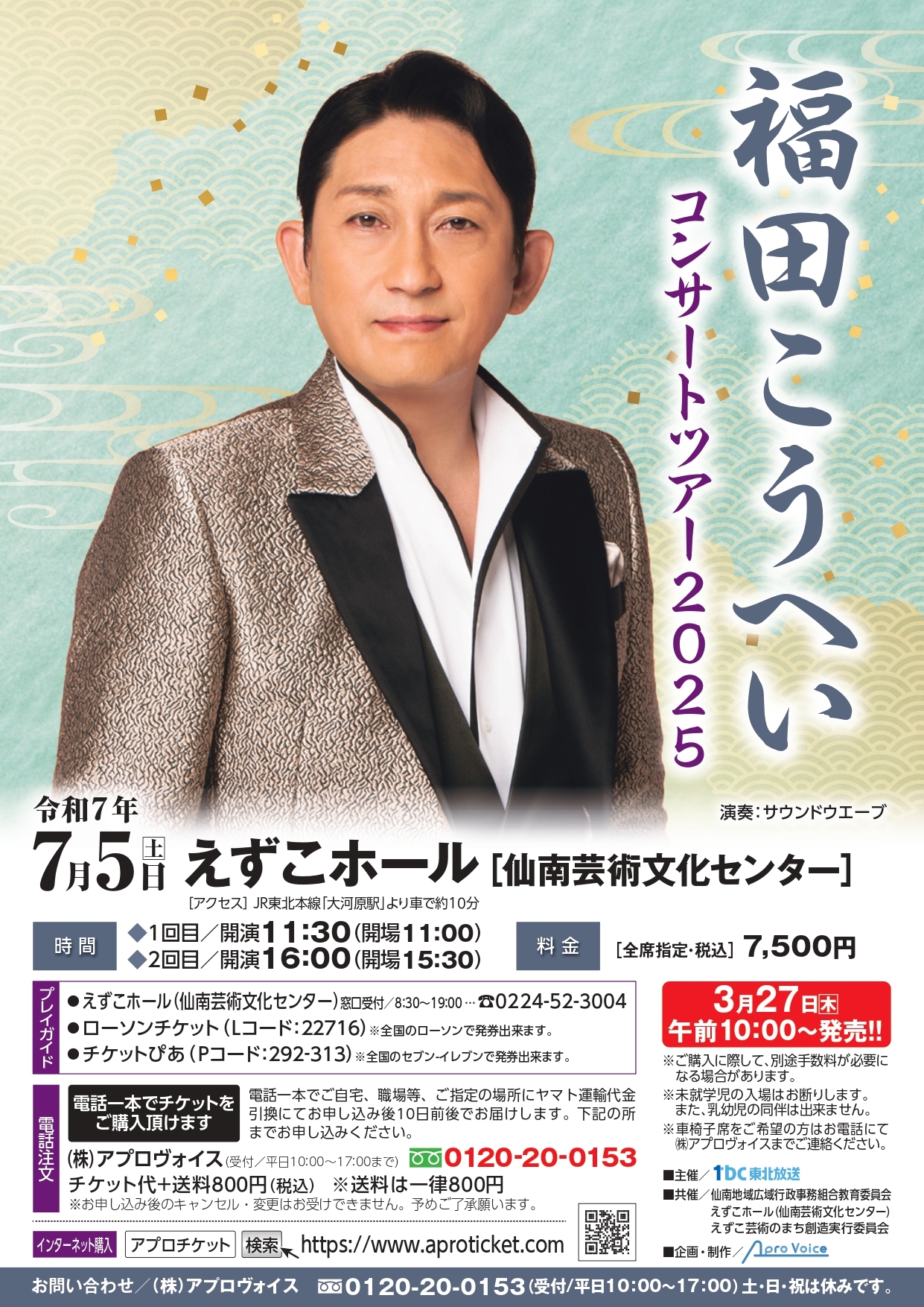 チケットは、えずこホール窓口、下記の取扱所、またはチケットぴあ、ローソンチケットでお求めください。