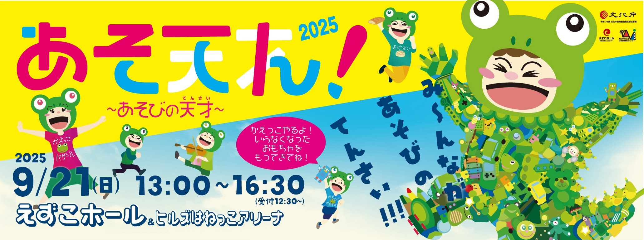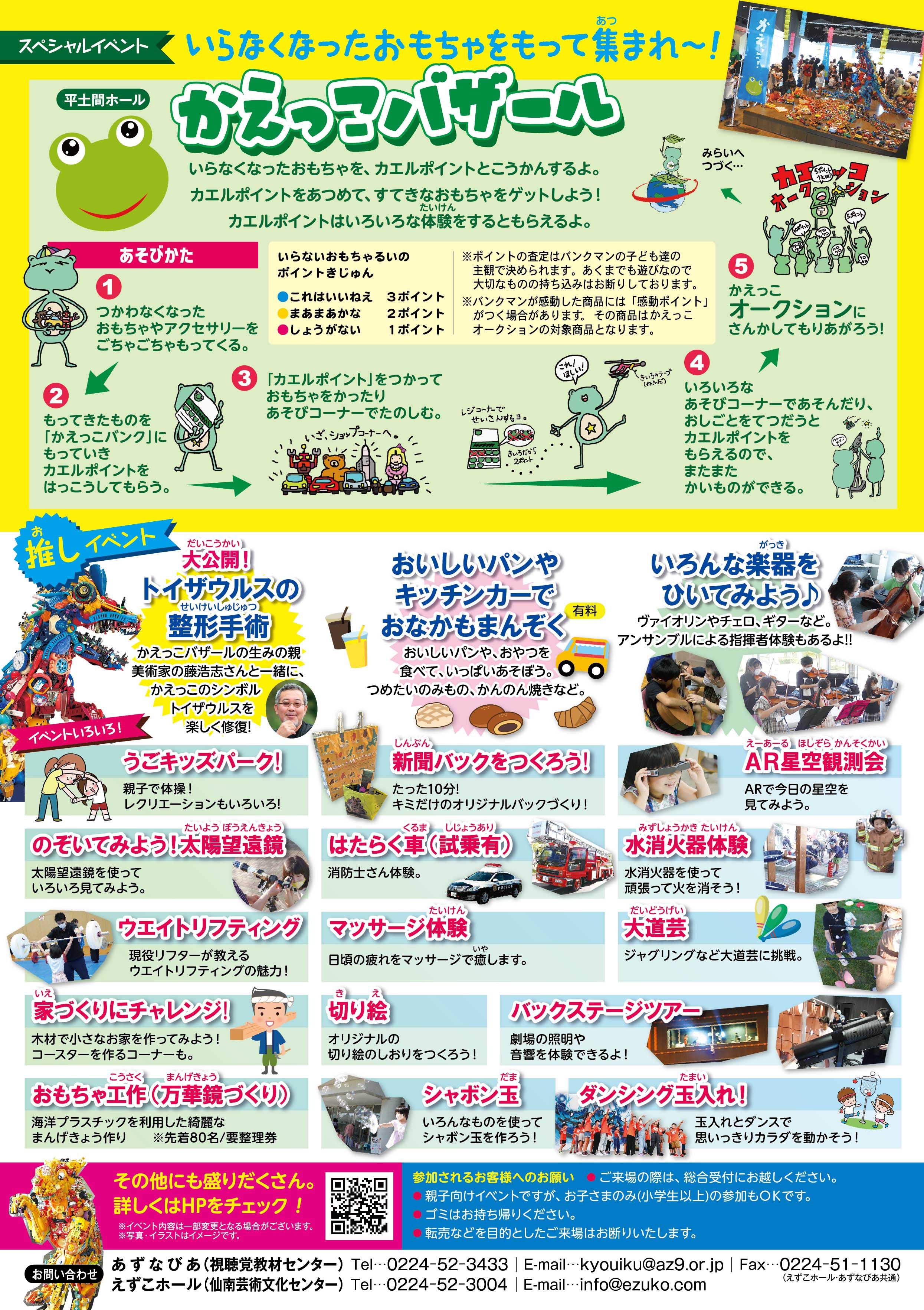 「あそてん」当日 えずこホールとヒルズはねっこアリーナでは、「かえっこ」が行われます。