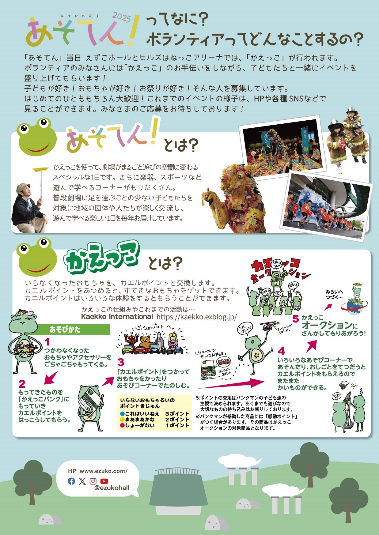 ●内 容:子どもたちにいろいろな作業や遊び、体験をしてもらい、カエルポイントを発行します。