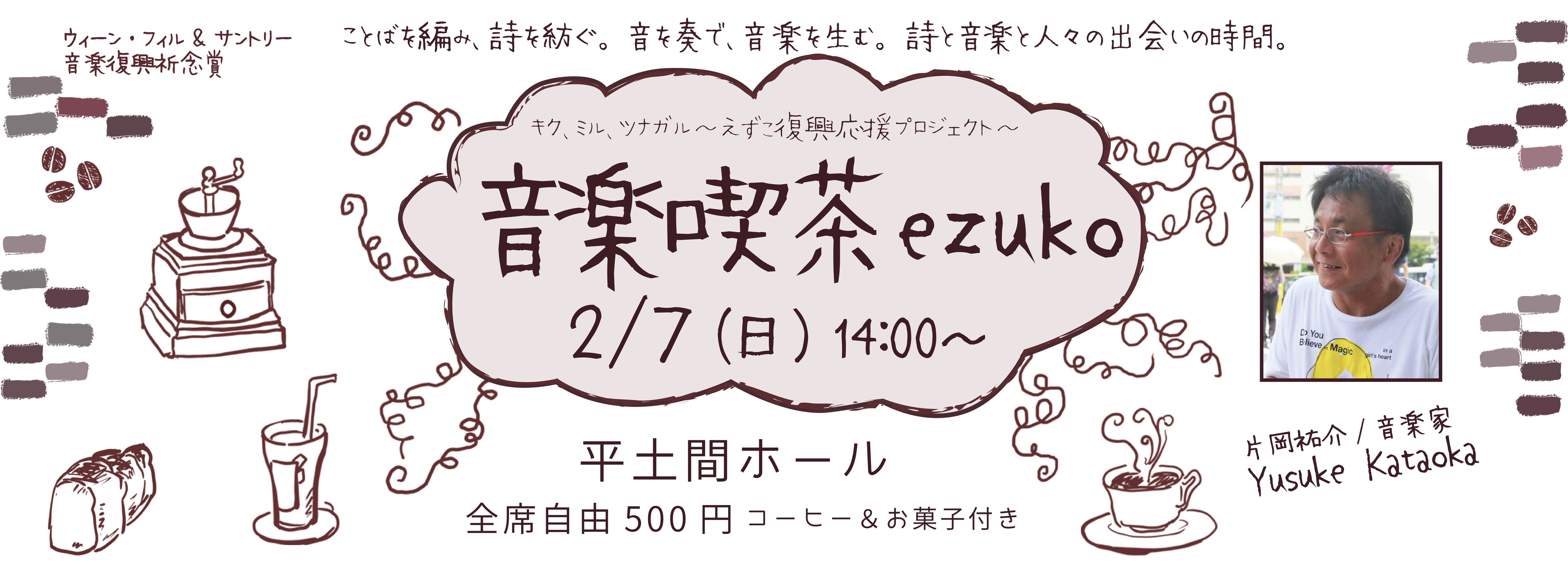 コトバがツナガルココロがツナガル 2つのワークショップで作られた詩と音楽で紡がれるパフォーマンスに加え、えずこホールを拠点に活動している音楽団体などのミニコンサートなどで皆さんのココロを繋いでいくステージ。皆さんにとって大事なココロに素敵な音楽をお届けします。