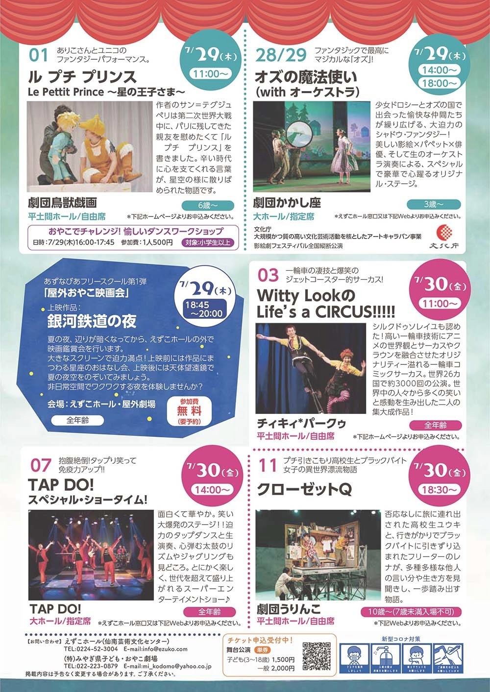 えずこホールをはじめ、エルパーク仙台、東京エレクトロンホール宮城の3つの会場で、0歳から楽しめる30を超えるプログラムが開催。