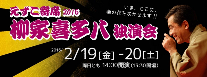 深みのある豊かな声、自然な語り口が心地よく響きわたる。人間国宝・柳家小三治一門下で抜群の存在感を放つ噺家・柳家喜多八。