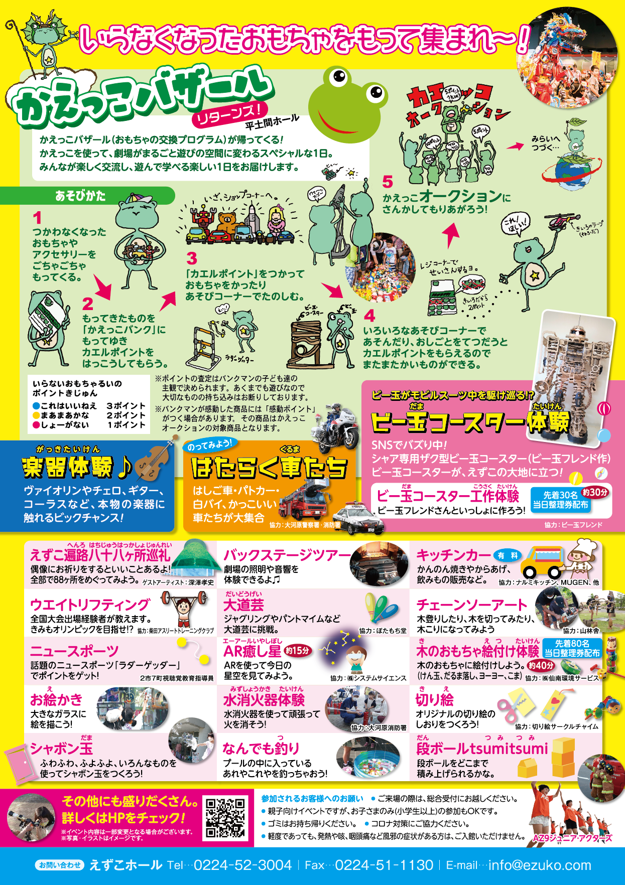 ●内 容:子どもたちにいろいろな作業や遊び、体験をしてもらい、カエルポイントを発行します。