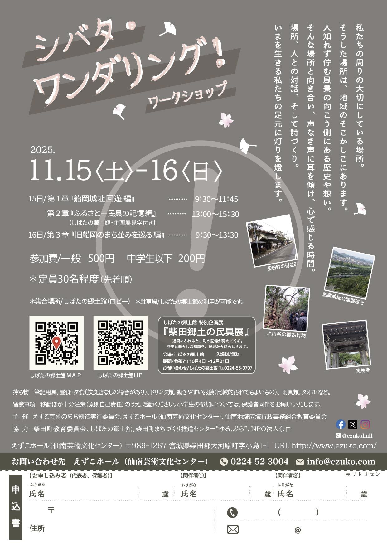 ■参加費:一般 500円 中学生以下 200円 定員30名程度(先着順)